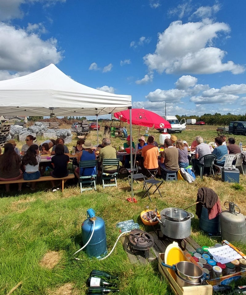 Régulièrement, nous organisons des événements pour célébrer les temps forts au verger: inauguration des chantiers de taille, ouverture de la cueillette, grand ramassage collectif de pommes pour la fabrication du jus, de compote ou de chips.